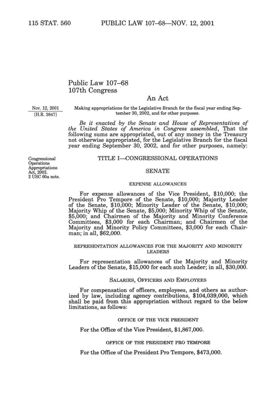 115 Stat. 560
