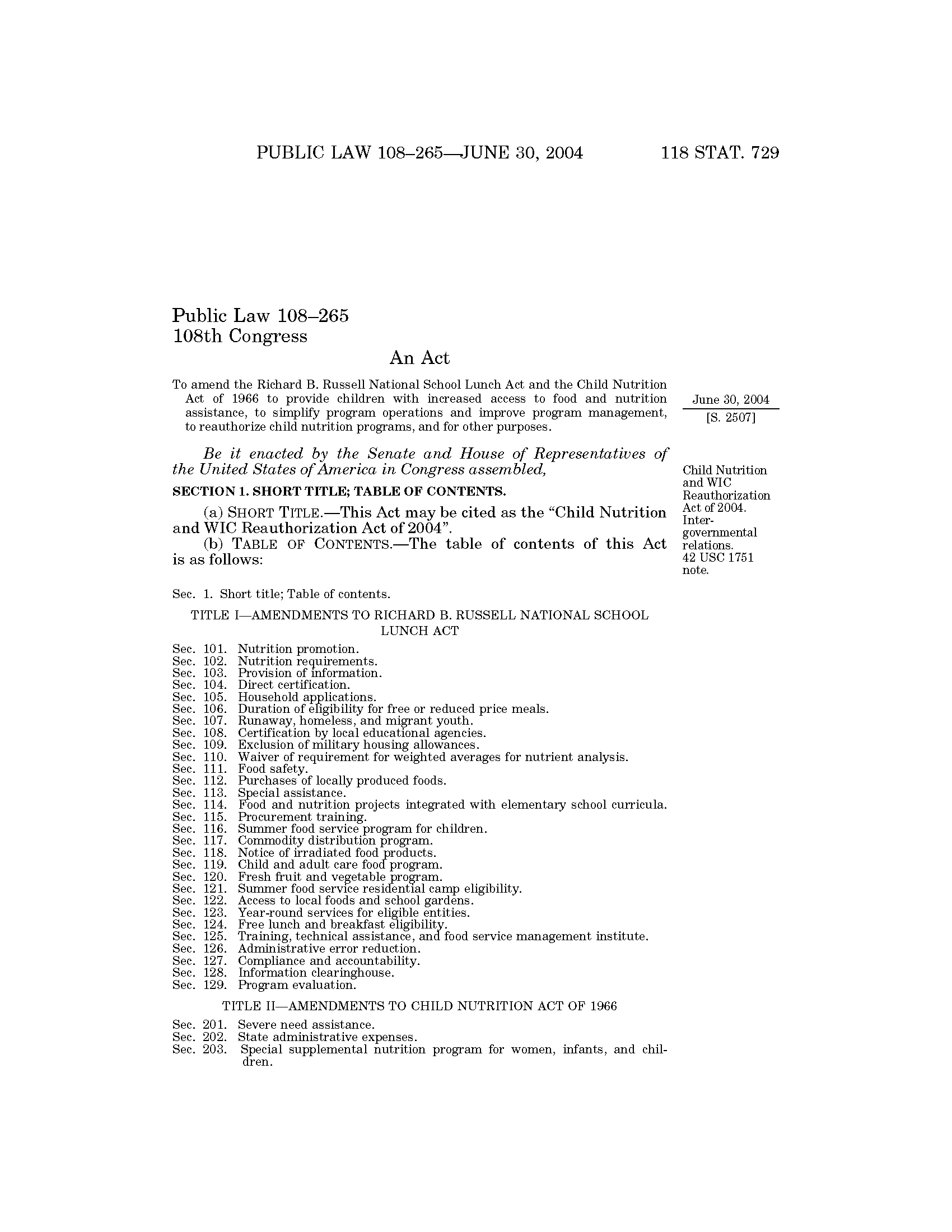 118 Stat. 729