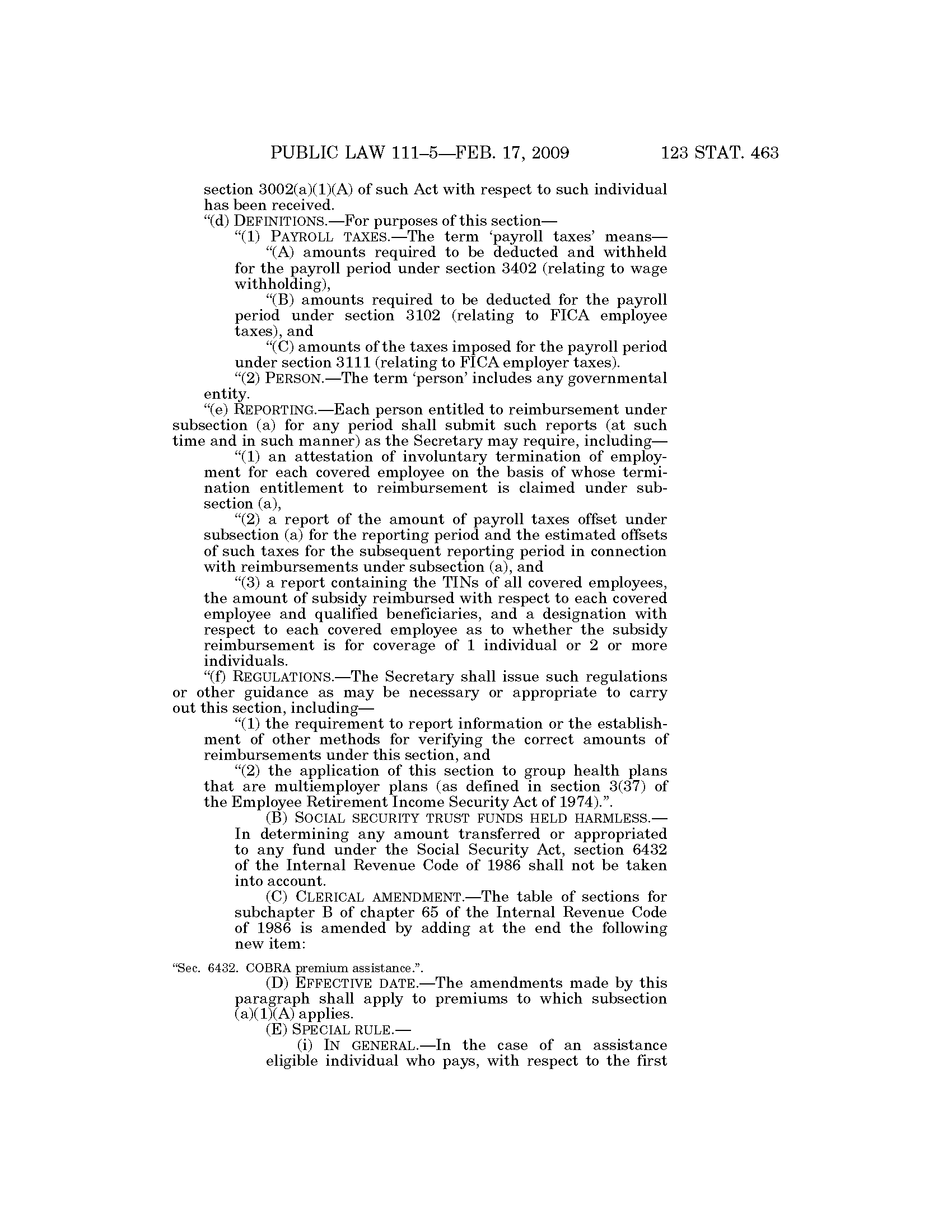 123 Stat. 463